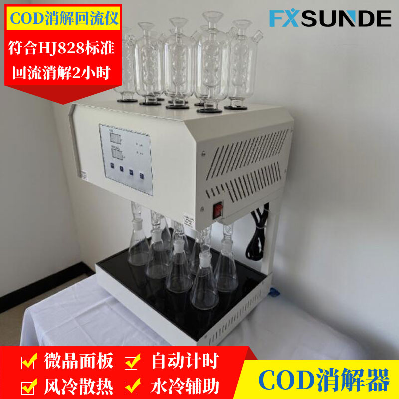 化學需氧量(COD)檢測需配備實驗室COD快速測定儀和重鉻酸鉀法COD回流消解裝置,執行HJ828-2017標準,用于進水、生化池、出水日常監測,是工藝調控的核心指標。