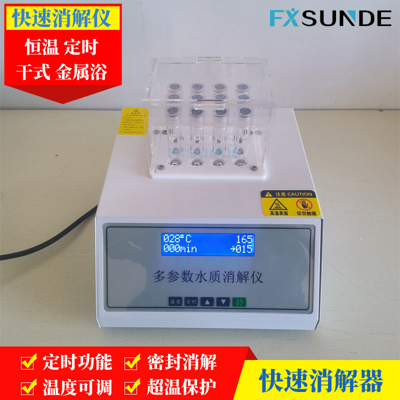 多功能消解儀用于COD、總磷、總氮樣品前處理,可同時處理多個樣品,提高檢測效率。